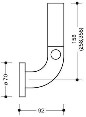 rechtwinklig nach oben gebogene Stange mit Befestigungsrosette · für handelsübliche WC-Papierrollen · diebstahlgeschützt durch verdeckte Verschraubung · 92 mm tief · Rosette Ø 70 mm · aus Polyamid