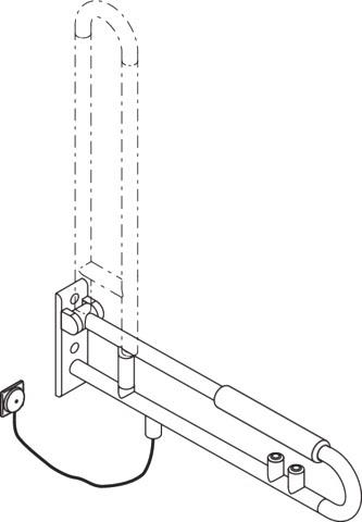mit Armpolster aus schwarzem PUR · zwei parallele · übereinander angeordnete · durch einen Verbindungsbogen zusammengefügte Stangen mit zwei integrierten Tasten · belastbar nach DIN 18040 bis 100 kg · kann nach oben und gebremst nach unten geklappt werden · mit durchgehendem · korrosionsgeschütztem Stahlkern und Wandplatte aus Polyamid mit integriertem Stahlkern · verdecktes · korrosionsfreies und geprüftes HEWI Befestigungsmaterial für unterschiedliche Wandaufbauten (bitte separat bestellen) · 78 mm breit und 259 mm hoch · Stangen Ø 33 mm · Taste mit blauem Ring zum Auslösen der WC-Spülung · Taste mit gelbem Ring zum Auslösen einer frei definierbaren Funktion · Tasten mit Schutzart IP67 · Spiralkabel mit freien Leitungsenden für Wandanschluss · inkl. weißer Abdeckung für Unterputzdose · Steuerspannung max. 30 V = SELV · PELV · Schaltstrom bis max. 2A · passend für alle gängigen UP-Spülkästen mit elektr. Steuerung · aus Polyamid