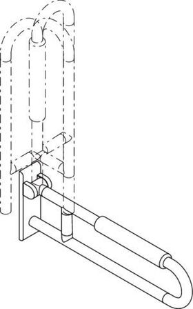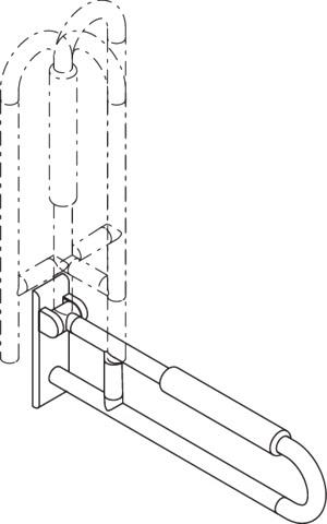 zwei parallele · übereinander angeordnete · durch einen Verbindungsbogen zusammengefügte Stangen · belastbar nach DIN 18040 mit 100 kg · kann nach oben und gebremst nach unten geklappt und in hochgeklappter Stellung nach links oder rechts zur Wand gedreht werden · mit durchgehendem · korrosionsgeschütztem Stahlkern und Wandplatte aus Polyamid mit integriertem Stahlkern · verdecktes · korrosionsfreies und geprüftes HEWI Befestigungsmaterial für unterschiedliche Wandaufbauten (bitte separat bestellen) · 78 mm breit und 259 mm hoch · Armpolster aus schwarzem PU-Integralschaum · Länge 295 mm · aus Polyamid