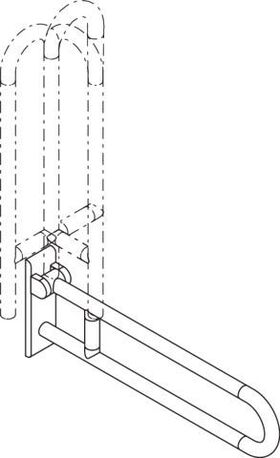 zwei parallele · übereinander angeordnete · durch einen Verbindungsbogen zusammengefügte Stangen · belastbar nach DIN 18040 bis 100 kg · kann nach oben und gebremst nach unten geklappt und in hochgeklappter Stellung nach links oder rechts zur Wand gedreht werden · mit durchgehendem · korrosionsgeschütztem Stahlkern und Wandplatte aus Polyamid mit integriertem Stahlkern · verdecktes · korrosionsfreies und geprüftes HEWI Befestigungsmaterial für unterschiedliche Wandaufbauten (bitte separat bestellen) · 78 mm breit und 259 mm hoch · aus Polyamid