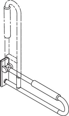 zwei parallele · übereinander angeordnete · durch einen Verbindungsbogen zusammengefügte Stangen · belastbar nach DIN 18040 bis 100 kg · kann nach oben und gebremst nach unten geklappt werden · mobil einsetzbar · zum einfachen und flexiblen Nachrüsten auf bestehender · vormontierter Montageplatte 950.50.016 (bitte separat bestellen) · werkzeuglose und schnelle Montage durch einfaches Einhängen des Stützklappgriffs · gegen unbeabsichtigtes Herausziehen mit Befestigungsschraube gesichert · verdecktes · korrosionsfreies und geprüftes HEWI Befestigungsmaterial für unterschiedliche Wandaufbauten (bitte separat bestellen) · 78 mm breit und 252 mm hoch · Stangen aus Polyamid · mit durchgehendem · korrosionsgeschütztem Stahlkern · mit Armpolster aus schwarzem PUR · 295 mm lang