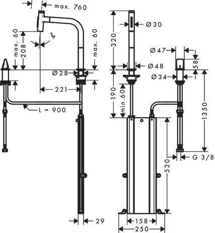 HG 2-L Einhebel-Spültischmischer METRIS mit sBox, Ausziehbrause mattschwarz
