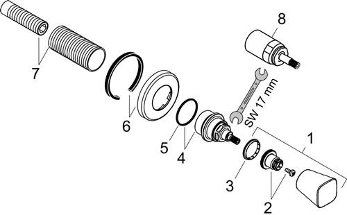 Lieferumfang: Rosette · Hülse · Griff · zu ergänzen mit Grundkörper für Abstellventil 15973180 · 15974180 oder 15970180
