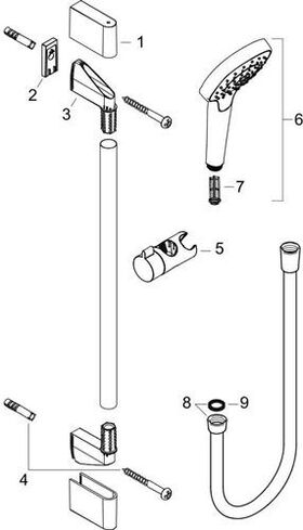 Strahlart Rain · IntenseRain · TurboRain · Strahlartenumstellung durch Select-Taste · Brausekopfgröße 110 mm · brauseseitiger Drehwirbel gegen Verdrehen des Brauseschlauches · Neigungswinkel um 90° verstellbar · Schieberegler schwenkt nach links und rechts sowie oben und unten · maximale Durchflussmenge (bei 3 bar) 15 l/min · verchromte Wandstütze aus Kunststoff · bestehend aus: Isiflex Brauseschlauch 1600 mm · Croma Select E Vario Handbrause · Unica`Croma Brausestange 900 bzw. 650 mm