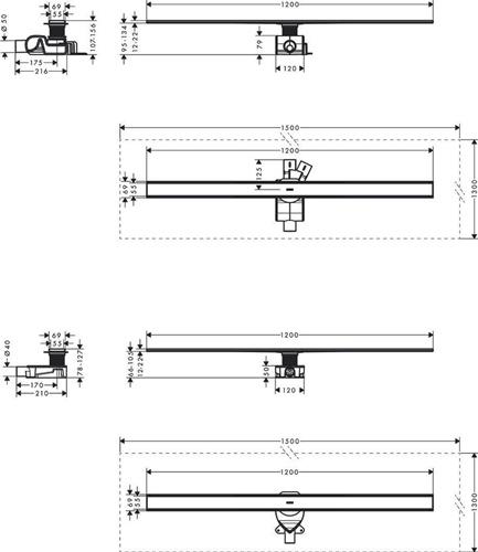 HG Duschrinne RainDrain Allround Komplettset 1200mm