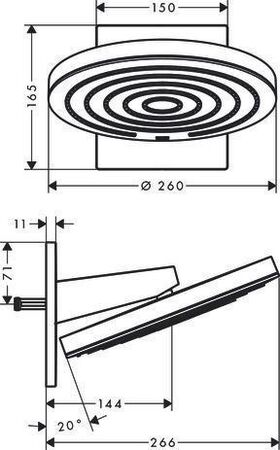 Brausekopfgröße 260 mm · Strahlart PowderRain · Intense PowderRain · Fast Drain Entleerungsfunktion reduziert Nachtropfen · Kugelgelenk · Winkeleinstellung von 10-30° · Strahlscheibe aus Kunststoff · Oberfläche graphit · Kopfbrause zur Reinigung abnehmbar · zu ergänzen mit Grundkörper iBox universal 01800180
