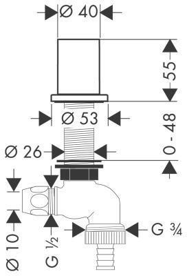 Einsatzzweck: für bis zu 47 mm dicke Arbeitsplatten · Schaft Ø 27 mm · Rückflussverhinderer · Geräteanschluss DN 20