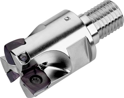 Hochvorschubfräser mit positiver/negativer Geometrie zum spannen von 3 Stück ZDEW 1204.. einseitigen Wendeschneidplatten · Schnittdurchmesser 32mm mit M16 Gewindeschaft für modulare Standardhalter · 40mm Überstandslänge · Kühlkanalbohrung zum Planfräsen