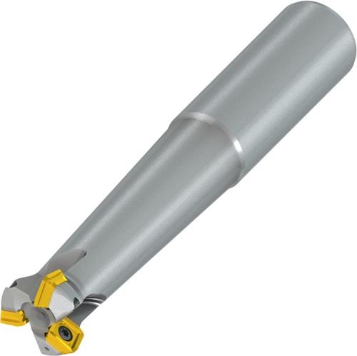 Äußerst vielseitiger 12° Hochvorschubfräser mit einseitigen SO.. 12-Wendeplatten mit APMX von 1,9 mm Durchmesser 17.3 mm mit 12° Anstellwinkel und 32 mm Zylinderschaft nach DIN 1835A · 120 mm Funktions- und 200 mm Gesamtlänge · Innere Kühlmittelzufuhr und Ungleichteilung zum Planfräsen · Kopierfräsen · Rampenfräsen · Helixfräsen · Tauchfräsen und progressiven Tauchfräsen.
