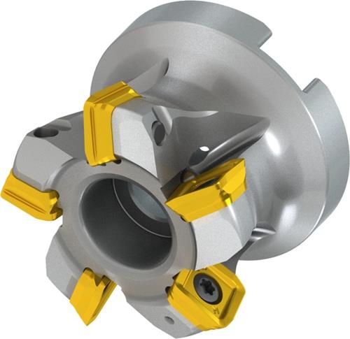 Äußerst vielseitiger 12° Hochvorschubfräser mit einseitigen SO.. 12-Wendeplatten mit APMX von 1,9 mm Durchmesser 32.3 mm mit 12° Anstellwinkel und 22 mm Anschlussbohrung nach DIN 8030-C · 40 mm Funktionslänge · Innere Kühlmittelzufuhr und Ungleichteilung zum Planfräsen · Kopierfräsen · Rampenfräsen · Helixfräsen · Tauchfräsen und progressiven Tauchfräsen.