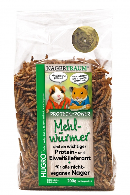 Die Nagertraum Mehlwürmer sind ein eiweißhaltiges Einzelfuttermittel für Nager.