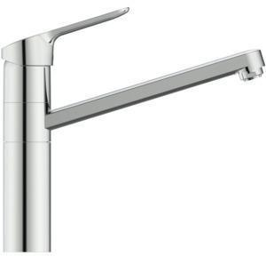 Niederdruck · hoch angesetzter Auslauf · in Mittelstellung Kaltwasser · schwenkbarer Rohrauslauf und Luftsprudler · Ausladung 222 mm · Auslaufhöhe 170 mm · flexible Anschlussschläuche G 3/8? · Bedienungshebel aus Metall mit Rot/Blau Markierung · Befestigung von unten (EASY-FIX) mit Zentrierdichtung · erforderlicher Lochdurchmesser 35 mm · Durchmesser 38 mm CLICK-Kartusche mit keramischen Dichtscheiben · Kartuschenübersetzung aus Edelstahl · Kartuschenschwenkbereich 100 Grad · integriertes Fettreservoir (lebensmittelverträglich) · integrierter Heißwassertemperaturbegrenzer · Lebensdauertest EN 817 · Geräuschverhalten DIN 4109 · Gruppe 1