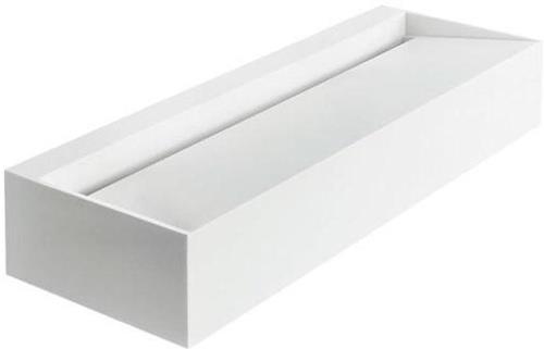 zur Wand- oder Aufsatzmontage · aus Mineralwerkstoff · porenfreie · glatte Oberfläche · schwer entflammbar · inkl. Befestigung und Ablauf · ohne Siphon · zentraler Ablauf