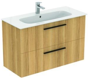 IDS Waschtisch/Möbel-Paket i.life A 100cm, Griff Schwarz Eiche Natur IDEAL STANDARD
