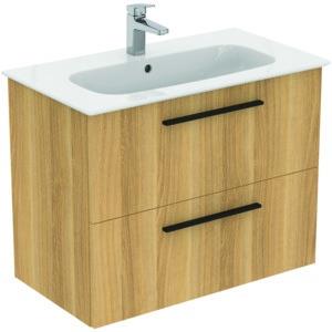 IDS Waschtisch/Möbel-Paket i.life A 80cm, Griff Schwarz Eiche Natur IDEAL STANDARD