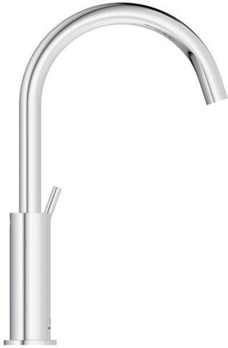 Durchfluss 5 l bei 3 bar · DN 15 · schwenkbarer Rohrauslauf und Caché Strahlregler mit druckunabhängigem Mengenregler 5 l/min · Ausladung 169 mm · Auslaufhöhe 221 mm · Metall Zugstangen-Ablaufgarnitur G 1 1/4 · flexible Anschlussschläuche · Bedienungshebel aus Metall · ohne Rot-/Blau-Markierung · Befestigung von unten (EASY FIX) mit Zentrierdichtung · Ø 28 mm Kartusche mit keramischen Dichtscheiben · Schwenkbereich 100 Grad · integriertes Fettreservoir (lebensmittelverträglich) · beiliegende Heißwasserbegrenzung · Lebensdauertest EN 817 · Geräuschverhalten DIN 4109 · Gruppe 1