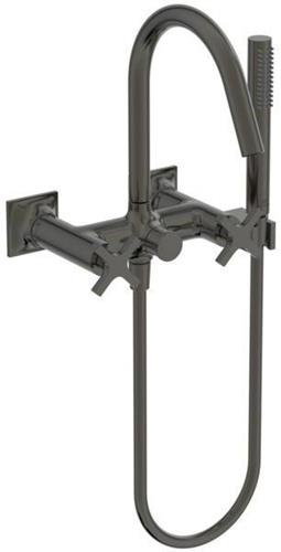 IDS Zweißriff-Badearmatur JOY NEO AP Kreuzgr. mit Brause-Set magnetic grey IDEAL STANDARD