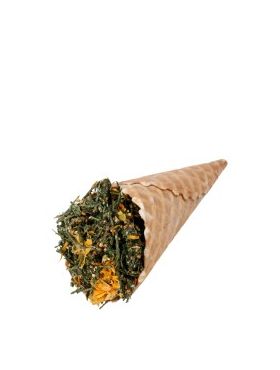 Knusprige Waffeltüte gefüllt mit einer leckeren Kräuter-Blütenmischung. Mit einem Halter zur sicheren Befestigung für einen langen Knabberspaß.