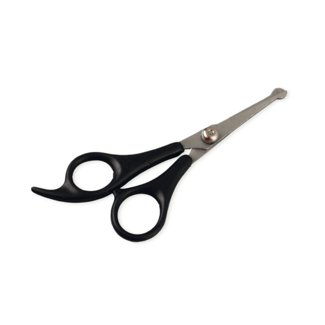 Diese Pflegeschere aus Edelstahl mit Kunststoffgriff eignet sich ideal zum Ausdünnen und Stylen der Haare an Ohren, Nase und Pfoten. Die abgerundeten Spitzen schützen dabei vor Verletzungen.