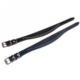 Unterlegtes Lederhalsband mit Ziersteinen. Verchromte Beschläge.