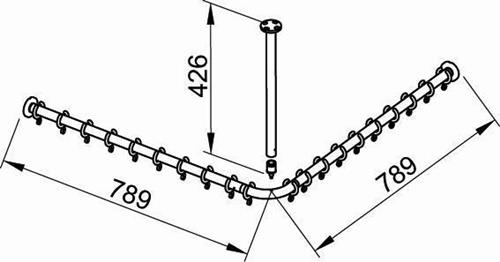 für 800 x 800 mm (Winkelform) · bestehend aus: 3x Wandbefestigung · 2x Brausevorhangstange 700 mm · 1x Rohrbogen 90° für Viereck-Duschwanne · 1x Deckenstütze 400 mm · 2x Vorhangringe · weiß (VPE 10 Stück) · 1x Verbindungsstück