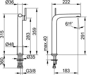 Auslaufhöhe 291 min · Ausladung 183 mm · Einlochmontage mit Schnell-Montagesystem · Anschlussart Anschlussschläuche G 3/8? · Mischwasserkartusche mit keramischen Dichtscheiben · Luftsprudler M 24 x 1 · Strahlwinkel +/- 6° verstellbar · Durchflussmenge 7,6 l/min · für Durchlauferhitzer geeignet · geräuschgeprüft