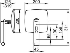 mit Wippschalter · Wandmodell · Lichtfarbe 6500 Kelvin (Tageslicht) · an dreidimensional verstellbarem Schwenkarm · Spiegel 1-seitig · Vergrößerungsfaktor x 5 · Stromversorgung 12 V Netzteil im Wandarm integriert · Eingangsbereich 220-240 V · LED 4,5 Watt