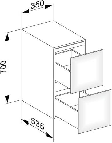 2x Frontauszüge · mit Push-to-Open-Öffnungstechnik · Einzugsdämpfung