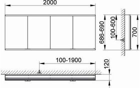 Keuco Spiegelschrank ROYAL MODULAR 2.0 Breite 2000mm Höhe 700mm Tiefe 120mm