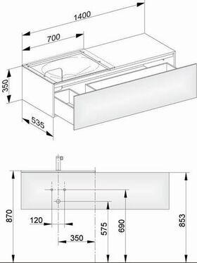 Keuco Waschtischunterbau EDITION 11 1400x350x535mm we hgl