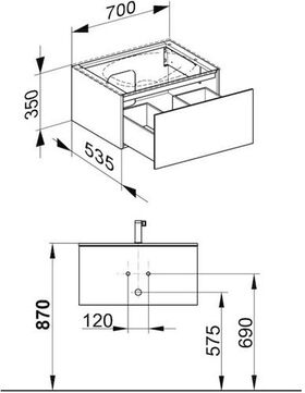 1x Frontauszug · mit Push-to-Open-Öffnungstechnik · Einzugsdämpfung · inkl. Geruchverschluss aus Kunststoff 1 1/4? x 32 · passend zum Varicor-Waschtisch auf Maß