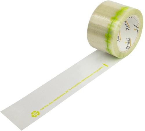 Xenial PET-Recycling-Klebeband 75 mm x 100 lfm. Umweltfreundliches Klebeband mit Aufdruck Ich bin aus mindestens 85 % recycelten PET-Flaschen hergestellt zeigt dem Empfänger · dass Sie umweltbewusst agieren! Niedriger CO2-Fußabdruck Zu mindestens 85 % aus recycelten PET-Flaschen hergestellt Recyclingfähig Kern aus recyceltem Papier Zuverlässiger und dauerhafter Verschluss für mittelschwere und schwere Kartonagen über 36 kg Weniger Rollenwechsel dank 100 lfm./Rolle Sehr gute Klebkraft Lösungsmittelfreier Hotmeltkleber Gute Feuchtigkeits- und Witterungsbeständigkeit Hitzebeständig kurzfristig bis ca. +170 °C Reißkraft: mind. 40 N/cm Klebkraft: mind. 5 N/cm