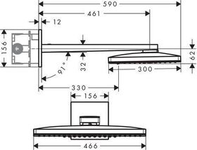 Brausekopfgröße 460 x 300 mm · Brausearm 460 mm · Strahlart Rain · RainStream · Mono · max. Durchflussmenge (bei 3 bar) 21 l/min · max. Durchflussmenge Rain (bei 3 bar) 17 l/min · Durchflussmenge RainStream (bei 3 bar) 21 l/min · Durchflussmenge Mono (bei 3 bar) 20 l/min · vollverchromte Strahlscheibe · Strahlscheibe Metall · zur Reinigung abnehmbar · Kopfbrause zur Reinigung abnehmbar · Wand-Unterputz-Installation auf iBox · DN 15 · mit eckiger Rosette