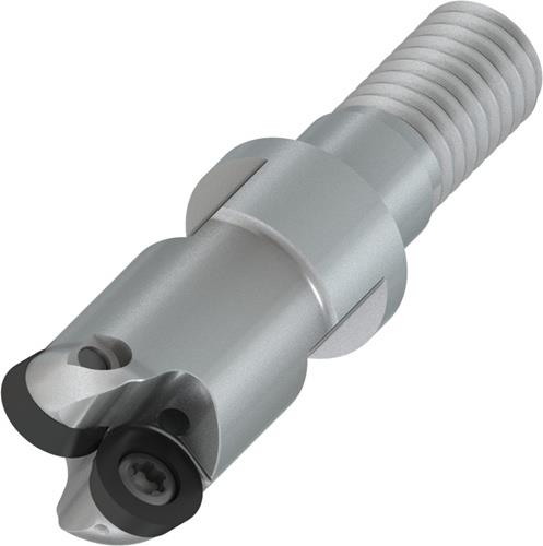 Plan-Kopierfräser mit doppelt positiver Geometrie welche 2 aus RD.. 0501MO.. einseitige Wendeschneidplatte · Schneiddurchmesser bis maximal 10mm mit M6 Gewindeschaft für standardisierte modulare Trägerwerkzeuge · 20mm funktional und 35mm Einsatzlänge · durchgehende Kühlung zum Planfräsen · Kopierfräsen · Rampen · progressiven Tauchfräsen und helikalen Fräsen mit einer maximalen Schnitttiefe von 1.5mm