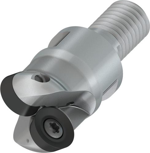 Plan-Kopierfräser mit doppelt negativer Geometrie welche 2 aus RD.. 12T3MOT oder RDHT 12T3MO-FA einseitige Wendeschneidplatte · Schneiddurchmesser bis maximal 24mm mit M12 Gewindeschaft für standardisierte modulare Trägerwerkzeuge · 32mm funktional und 54mm Einsatzlänge · durchgehende Kühlung zum Planfräsen · Kopierfräsen · Rampen · progressiven Tauchfräsen und helikalen Fräsen mit einer maximalen Schnitttiefe von 3mm