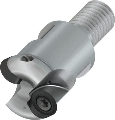 Plan-Kopierfräser mit doppelt positiver Geometrie welche 2 aus RD.. 1003MOT oder RDHT 1003MO-FA einseitige Wendeschneidplatte · Schneiddurchmesser bis maximal 25mm mit M12 Gewindeschaft für standardisierte modulare Trägerwerkzeuge · 32mm funktional und 54mm Einsatzlänge · durchgehende Kühlung zum Planfräsen · Kopierfräsen · Rampen · progressiven Tauchfräsen und helikalen Fräsen mit einer maximalen Schnitttiefe von 2.5mm