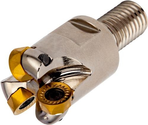 Kopier-Planfräser mit doppelt negativer Geometrie zum spannen von 3 Stück RCMT 10T3MO.. einseitigen Wendeschneidplatten · Schnittdurchmesser 25mm mit M12 Gewindeschaft für modulare Standardhalter · 32mm Überstandslänge · Kühlkanalbohrung zum Planfräsen · Kopierfräsen · Rampen · Helikalen Fräsen und progressiven Eintauchen mit einer maximalen Schnitttiefe von 5.0mm