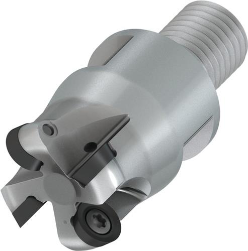 Plan-Kopierfräser mit doppelt negativer Geometrie welche 4 aus RD.. 1003MOT oder RDHT 1003MO-FA einseitige Wendeschneidplatte · Schneiddurchmesser bis maximal 32mm mit M16 Gewindeschaft für standardisierte modulare Trägerwerkzeuge · 42mm funktional und 65mm Einsatzlänge · durchgehende Kühlung zum Planfräsen · Kopierfräsen · Rampen · progressiven Tauchfräsen und helikalen Fräsen mit einer maximalen Schnitttiefe von 2.5mm