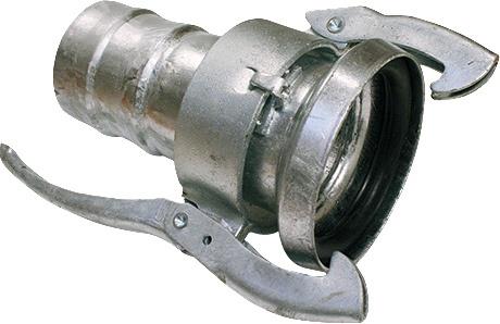 Mutterteil für Schelleneinband · Typ C 78 mit Schlauchstutzen · Hebelverschlussring · Becher und Dichtung. Mit fest montiertem Hebel.