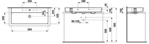 Laufen Aufsatzwaschtisch VAL 950x420mm m ÜL 2 HL-Ausf. weiß