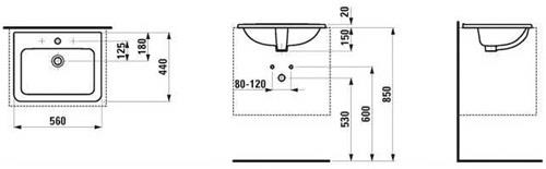 Laufen Einbauwaschtisch LAUFEN PRO A 560x440mm m ÜL 1 HL-Ausf. weiß