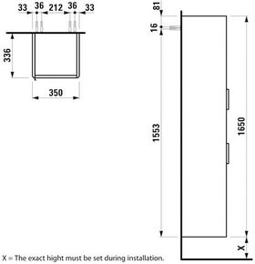 Laufen Hochschrank BASE FÜR PRO S 1650x350x336mm Scharn. rechts weiß matt