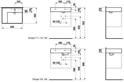 Laufen Waschtisch KARTELL 600x460mm Abl. li o ÜL 2 HL-Ausf. weiß