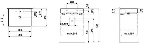 Laufen Waschtisch KARTELL 600x460mm unterbauf m ÜL 1 HL-Ausf. weiß