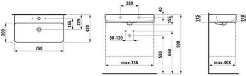 Laufen Waschtisch VAL 750x420mm m ÜL 3 HL-Ausf. weiß