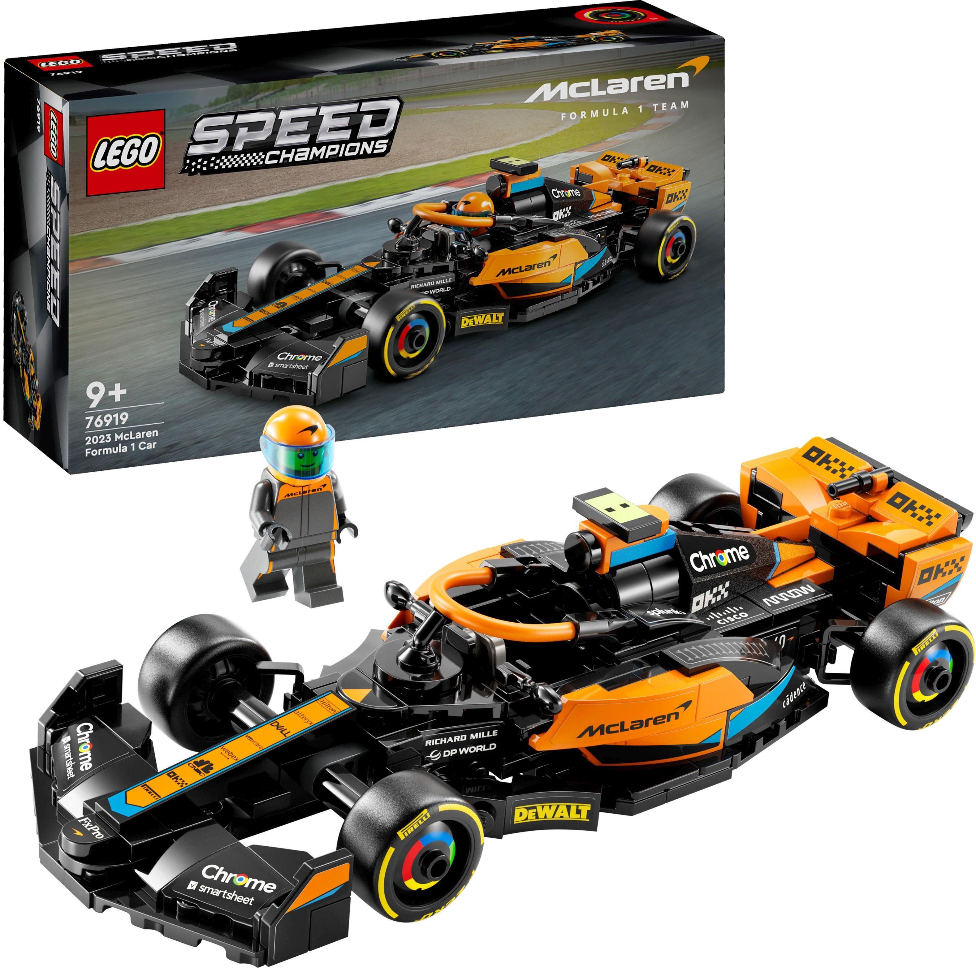 Der LEGO Speed Champions McLaren Formel-1 Rennwagen 2023 (76919) ist ein Spielzeugauto zum Sammeln, Bauen und Ausstellen. Mädchen und Jungen ab 9 Jahren können den windschnittigen Spielzeugflitzer mit einigen legendären Designdetails des Originals nachbilden, das zur Feier des 60-jährigen Jubiläums von McLaren Racing entwickelt wurde und 2023 um die Formel-1-Weltmeisterschaft mitgefahren ist. Modell des McLaren Flitzers mit vielen originalgetreuen Details: Lackierung in Schwarz und Orange, Logos der Teamsponsoren, Reifen mit Pirelli-Aufdruck und orangem Cockpitschutz. Das Set beinhaltet neben dem baubaren Rennauto auch eine Rennfahrer-Minifigur, die dein Kind hinter das Lenkrad setzen und in packende Rennen schicken kann. LEGO Speed Champions Sets lassen Kinder und begeisterte Autofans Nachbildungen von einigen der legendärsten Flitzer der Welt bauen. Dein Kind wird die hochwertigen Modelle mit ihren zahlreichen markanten Details gern mit LEGO Steinen nachbilden. Jedes dieser Spielzeugautos kann auch mithilfe der LEGO Builder App konstruiert werden, die dich und dein Kind auf ein ebenso leichtes wie intuitives Bauabenteuer mitnimmt. Dieses baubare LEGO Auto aus 245 Teilen ist 4 cm hoch, 19 cm lang und 7 cm breit Enthält 245 Teile.