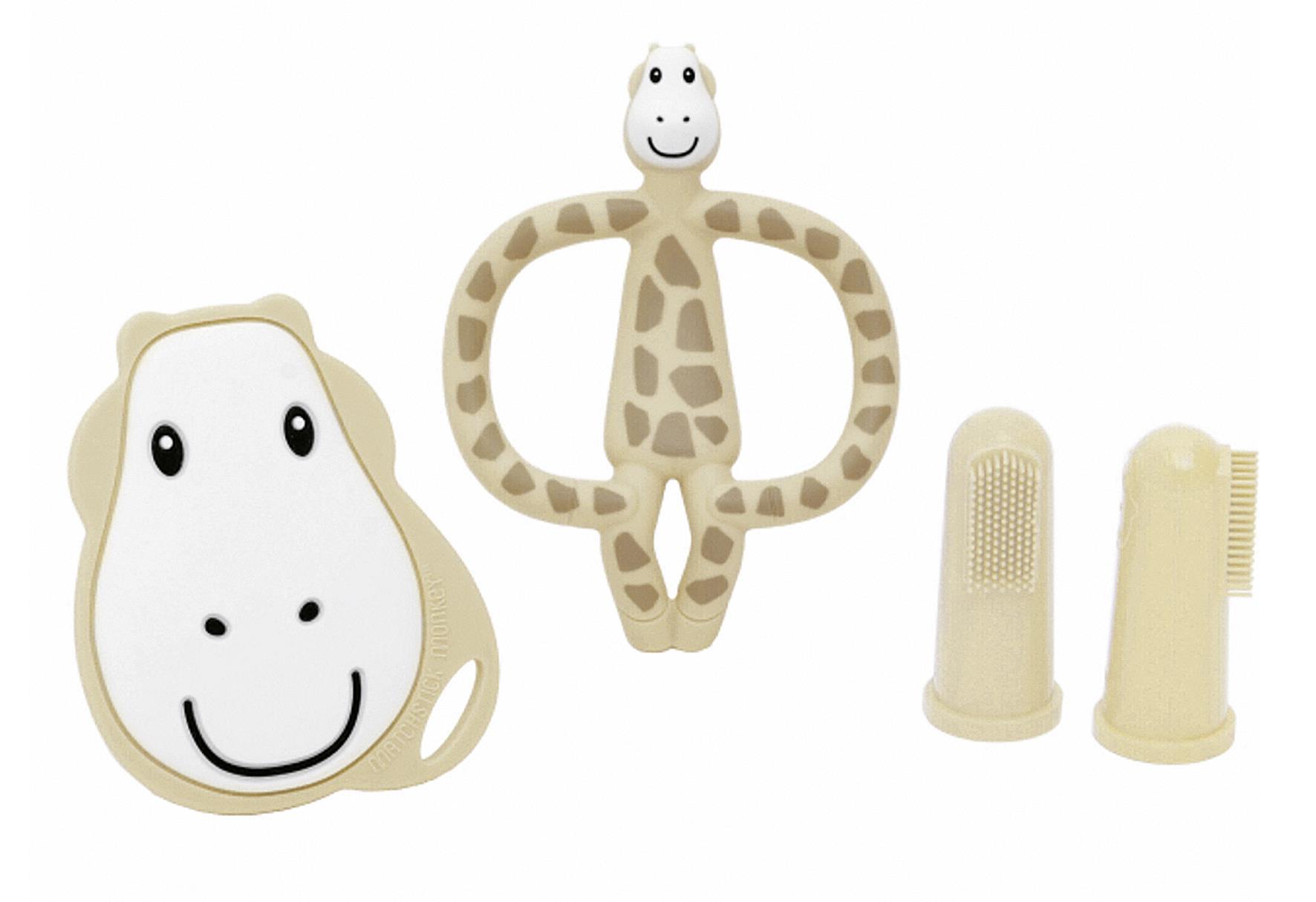 MATCHSTICK MONKEY Beißring 'Gigi Giraffe' Starter Set 4-teilig 2 Zahnungshilfen mit weichen Zahnungsnoppen, 2 Fingerzahnbürsten
