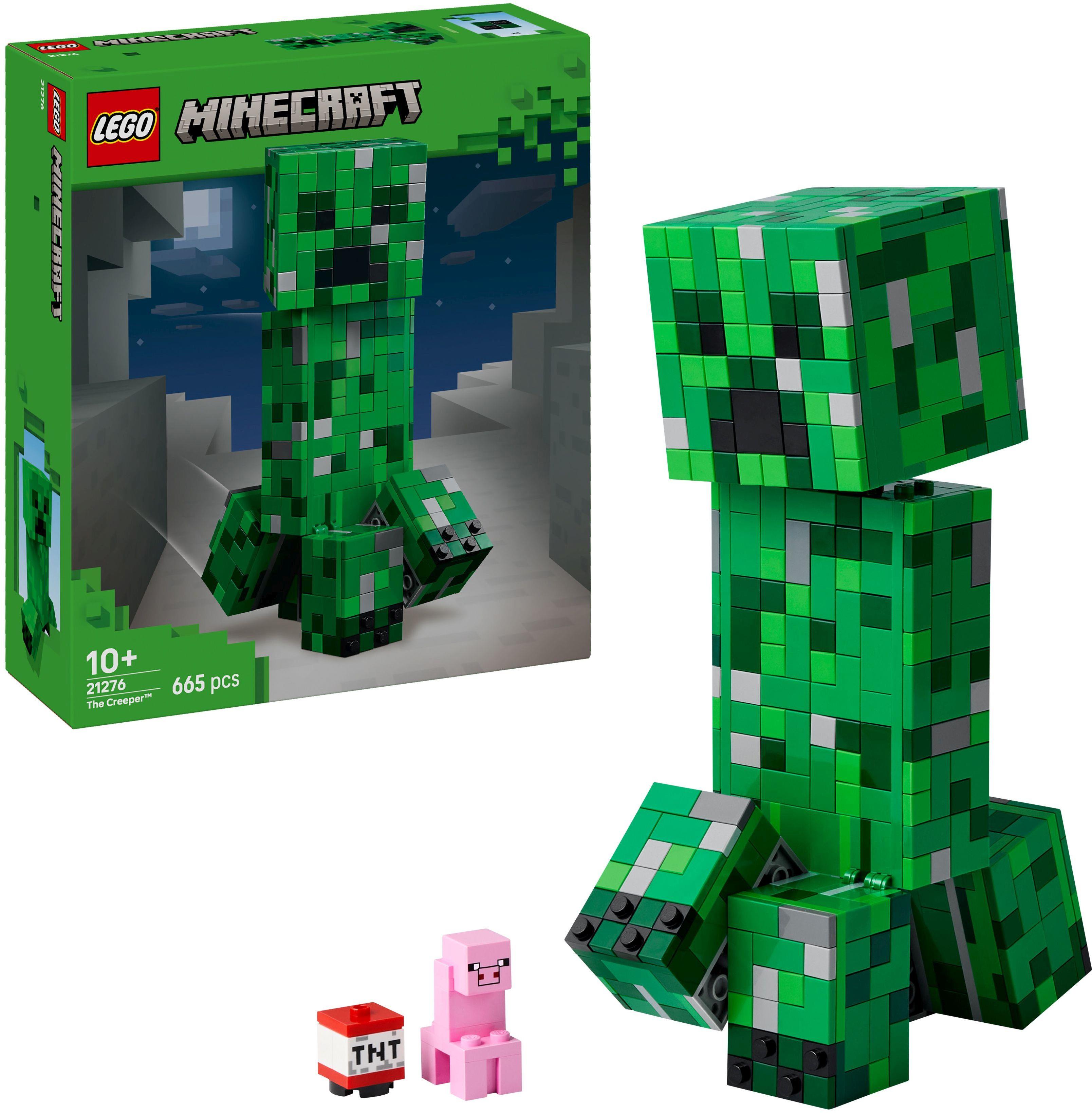 LEGO Minecraft Der Creeper (21276) ist eine große bewegliche Actionfigur zum Bauen, Spielen und Ausstellen. Diese tolle Zimmer-Deko ist das perfekte Geburtstags-, Weihnachts- oder Überraschungsgeschenk für Jungen und Mädchen ab 10 Jahren oder Teenager, die Minecraft lieben. Die baubare Spielzeugnachbildung des legendären Creepers aus Minecraft ist 21 cm groß. Die Actionfigur kann ihre Beine bewegen und ihren Kopf zur Seite drehen und neigen. Nimmt man die Vorderseite des Kopfes des LEGO Minecraft Creepers ab, kommen ein TNT-Block und eine kleine Version des ersten Creepers zum Vorschein. Zusätzlichen digitalen Bauspaß bietet die LEGO Builder App. Kinder können in der App auf ihrem Mobilgerät 3D-Modellansichten vergrößern und drehen. Diese LEGO Nachbildung des Minecraft Creeper ist 21 cm groß. Enthält 665 Teile.