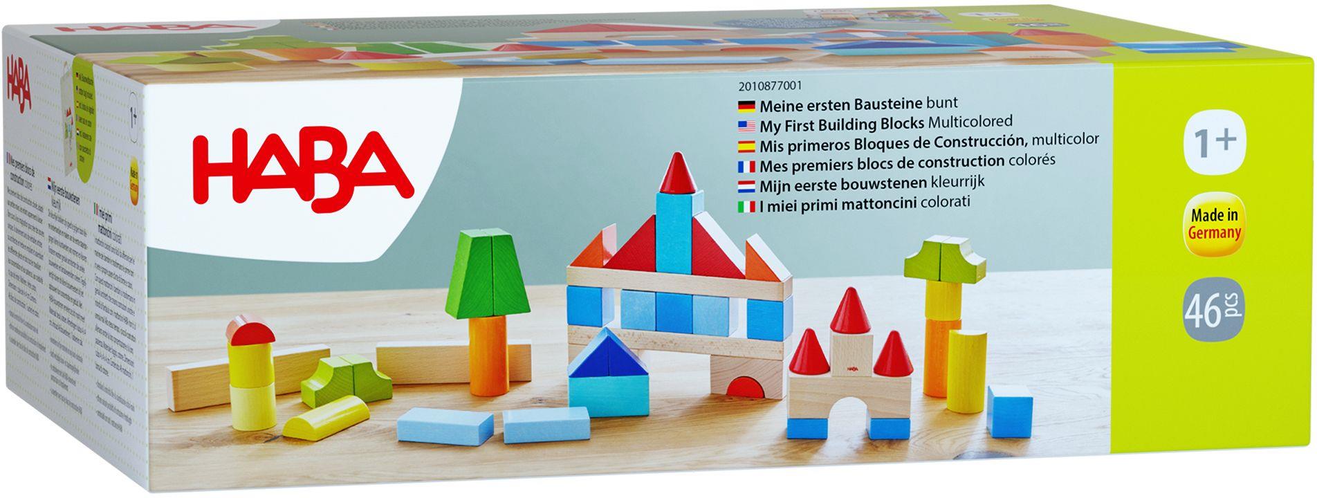 Die bunten Bausteine sind für kleine Kinderhände gut zu greifen und verwandeln erste Stapeleien in richtige kleine Kunstwerke aus Formen und Farben. Mit ihnen werden die Kinder zu genialen Architekten, die einzigartige Bauwerke und Fantasiewelten erschaffen – so kommt mit den HABA Bausteinen nie Langeweile auf! Gleichzeitig trainieren die kleinen Baumeister:innen beim Aufbau auch ihre Konzentration und Geduld.
