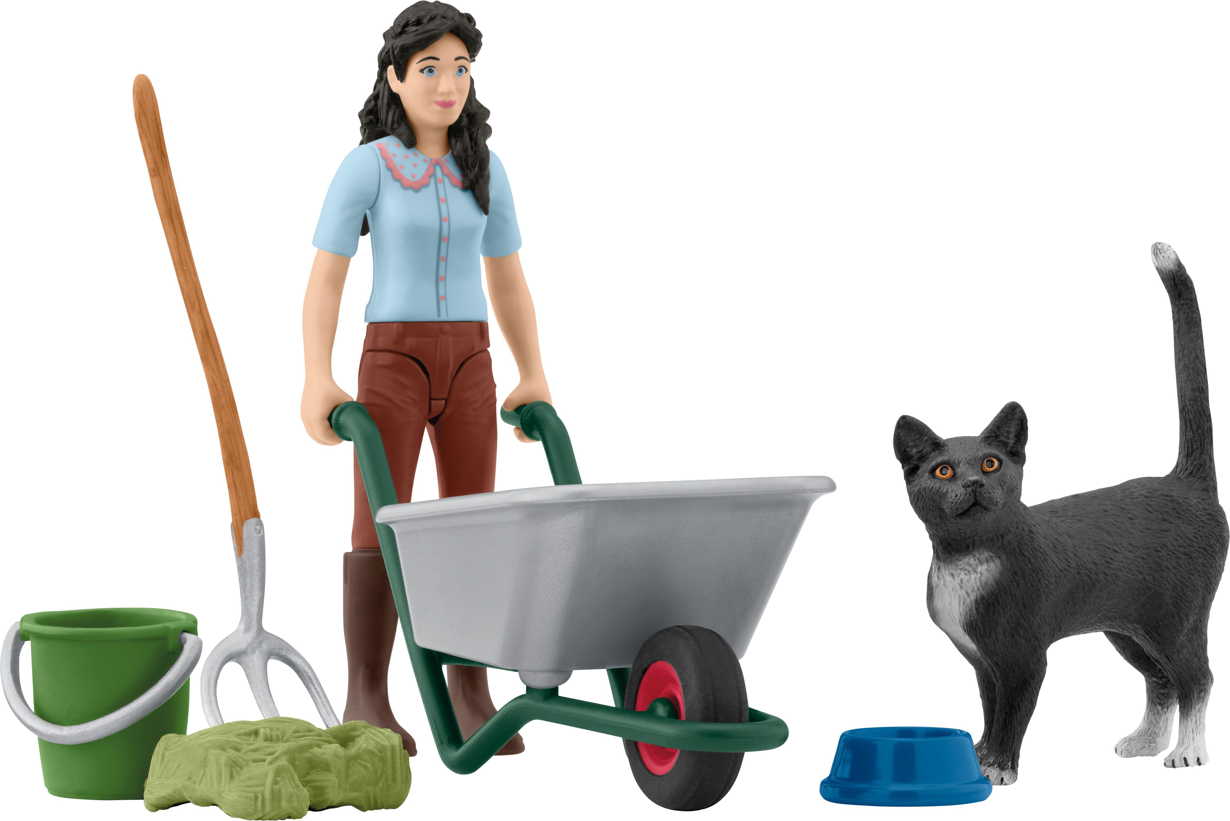 In Emily's Ausmist- und Pfelgeset sind alle Utensielen enthalten, um sich liebevoll um alle tierischen Stallbewohner zu kümmern. Hilfst du Emily die schwere Schubkarre zu schieben und die Katze zu füttern?